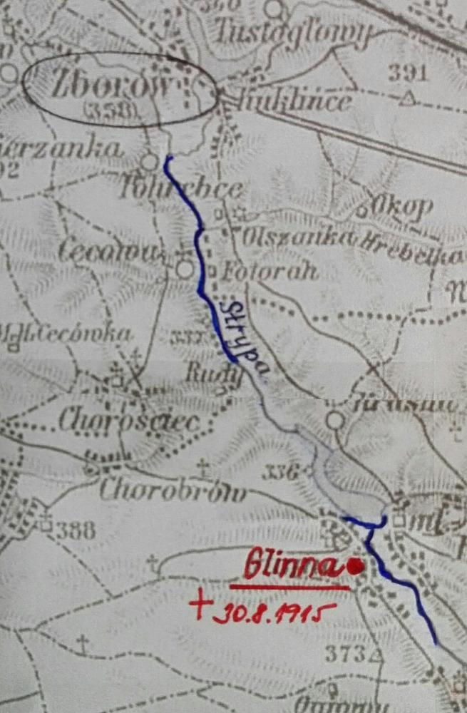 Obec: Glinna (Hlynna) na Strypě, cca 40 km od Tarnopolu